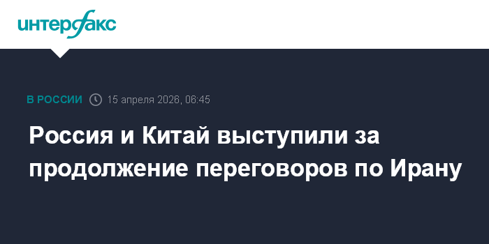 Москва. 15 апреля. INTERFAX.RU - Москва и Пекин выступают за продолжение переговорного процесса по урегулированию ситуации вокруг Ирана, готовы содействовать этому процессу, заявил глава МИД РФ Сергей Лавров.