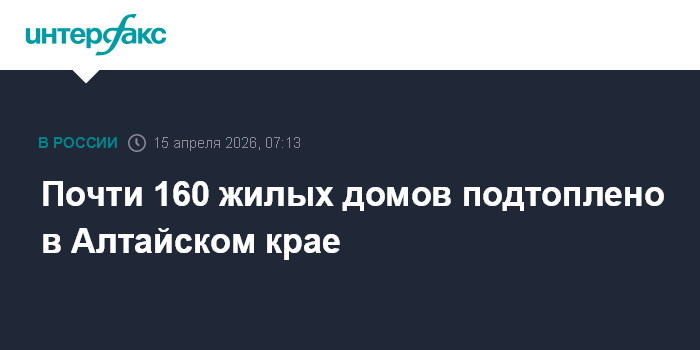 Москва. 15 апреля. INTERFAX.RU - Количество домов, подтопленных в Алтайском крае, за сутки несколько снизилось и составляет, по данным на утро среды, 159, сообщает пресс-служба uлавного управления МЧС РФ по региону.