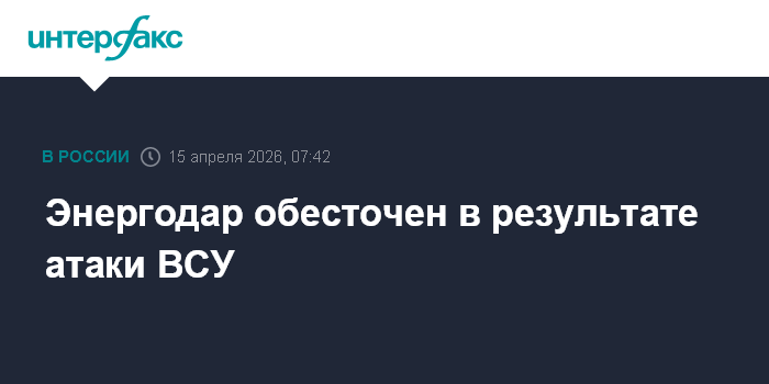 Москва. 15 апреля. INTERFAX.RU - Энергодар обесточен в результате атаки ВСУ, сообщил глава города Максим Пухов в своем канале в мессенджере Max.