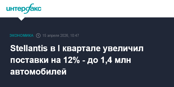 Москва. 15 апреля. INTERFAX.RU - Автомобильный концерн Stellantis NV в первом квартале увеличил поставки на 12%, при этом подъем был отмечен во всех регионах.