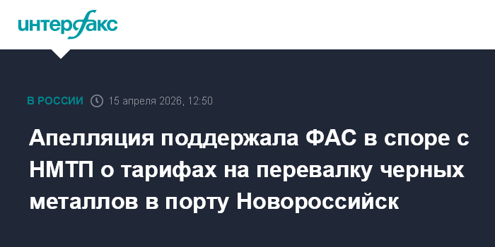 Москва. 15 апреля. INTERFAX.RU - Девятый арбитражный апелляционный суд в среду поддержал определение Арбитражного суда Москвы, который отклонил иск ПАО "Новороссийский морской торговый порт" (НМТП) к Федеральной антимонопольной службе (ФАС) РФ о тарифах на перевалку черных металлов в порту Новороссийск.