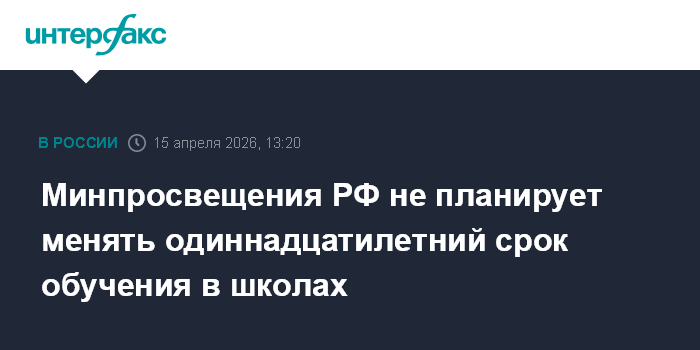 Москва. 15 апреля. INTERFAX.RU - Глава Минпросвещения РФ Сергей Кравцов считает оптимальным одиннадцатилетний срок обучения в школах, планов по его изменению нет.