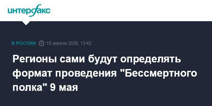 Ранее начальник управления президента по общественным проектам Сергей Новиков сообщал, что акция "Бессмертный полк" в 2026 году в зависимости от ситуации с безопасностью будет проводиться как очно, так и в онлайн-формате.