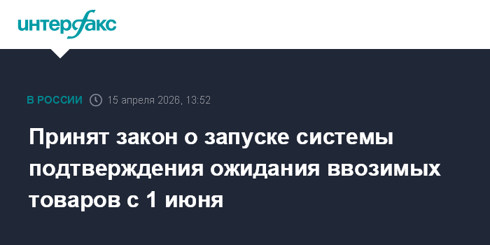 Принят закон о запуске системы подтверждения ожидания ввозимых товаров с 1 июня