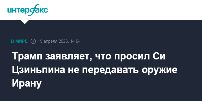 Москва. 15 апреля. INTERFAX.RU - Президент США Дональд Трамп заявил Fox News, что просил председателя КНР Си Цзиньпина не поставлять оружие Ирану, и что Си Цзиньпин в ответном послании указал на отсутствие таких поставок.