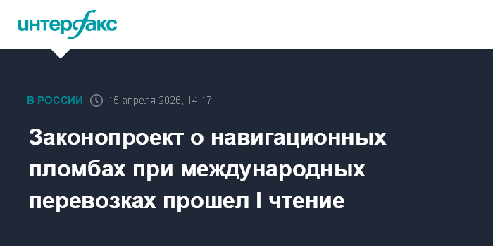 Москва. 15 апреля. INTERFAX.RU - Госдума приняла в первом чтении поправки № 1174838-8 в закон о международных автоперевозках и Устав железнодорожного транспорта, которые законодательно закрепляют обязательное применение навигационных пломб при международных автомобильных и железнодорожных перевозках отдельных категорий товаров по территории России.