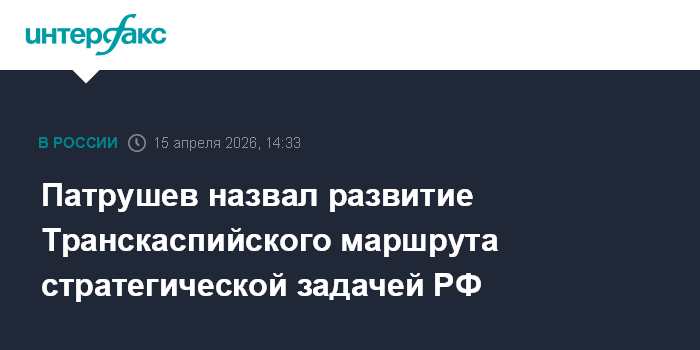 Москва. 15 апреля. INTERFAX.RU - Развитие Транскаспийского маршрута международного транспортного коридора Север - Юг является стратегической задачей для России, заявил помощник президента РФ, председатель Морской коллегии Николай Патрушев.