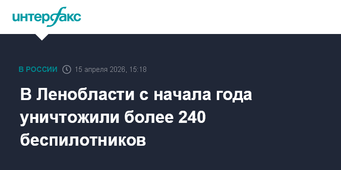 Москва. 15 апреля. INTERFAX.RU - Над территорией Ленинградской области в этом году ликвидировано 243 беспилотника, сообщил губернатор региона Александр Дрозденко, выступая с отчетом перед Законодательным собранием региона в среду в Тосно.