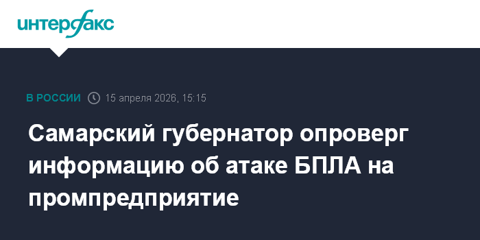 Москва. 15 апреля. INTERFAX.RU - Губернатор Самарской области Вячеслав Федорищев опроверг сообщение о попадании беспилотника в одно из промпредприятий региона.