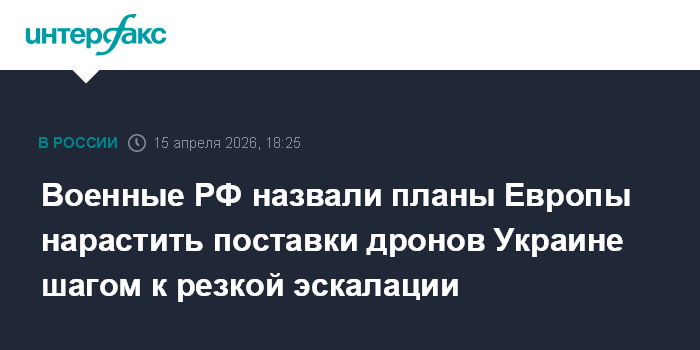 Москва. 15 апреля. INTERFAX.RU - Российские военные заявили, что планы ряда стран Европы нарастить поставки дронов Украине ведут к непредсказуемым последствиям и резкой эскалации военно-политической обстановки на всём континенте.