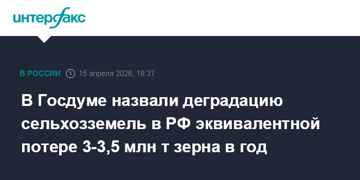 В Госдуме назвали деградацию сельхозземель в РФ эквивалентной потере 3-3,5 млн т зерна в год