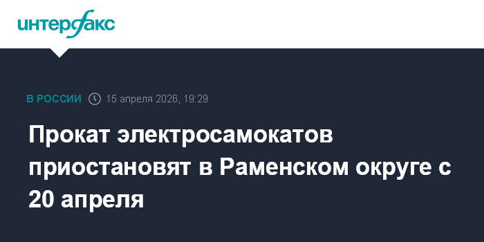 Москва. 15 апреля. INTERFAX.RU - Прокат электросамокатов в Раменском муниципальном округе будет приостановлен с 20 апреля, сообщает пресс-служба администрации муниципалитета в среду.