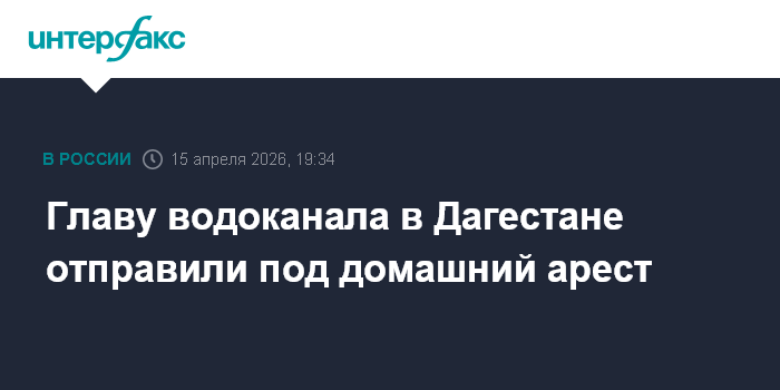 Москва. 15 апреля. INTERFAX.RU - Советский районный суд Махачкалы отправил под домашний арест директора водоканала Карабудахкентского района по делу о массовом отравлении питьевой водой, сообщает пресс-служба суда.