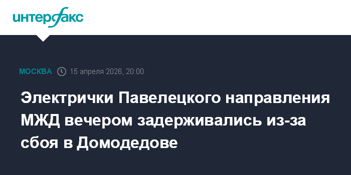 Москва. 15 апреля. INTERFAX.RU - На Павелецком направлении Московской железной дороги несколько пригородных электричек в сторону Москвы и обратно следуют с задержкой из-за затрудненного движения на станции "Домодедово", сообщили "Интерфаксу" в пресс-службе МЖД.