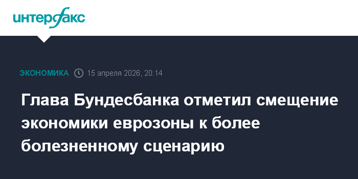 Москва. 15 апреля. INTERFAX.RU - Ситуация в экономике еврозоны из-за военного конфликта на Ближнем Востоке сместилась за пределы базового сценария Европейского центробанка в сторону более болезненного, заявил Bloomberg TV глава Бундесбанка и член совета управляющих ЕЦБ Йоахим Нагель.