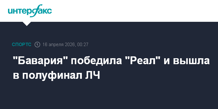 Москва. 16 апреля. INTERFAX.RU - Футболисты немецкой "Баварии" со счетом 4:3 обыграли испанский "Реал" в ответном матче 1/4 финала Лиги чемпионов УЕФА.