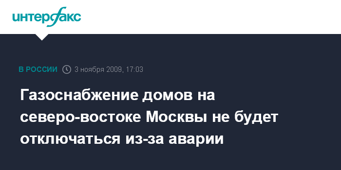 Газоснабжение домов на северо-востоке Москвы не будет отключаться из-за аварии