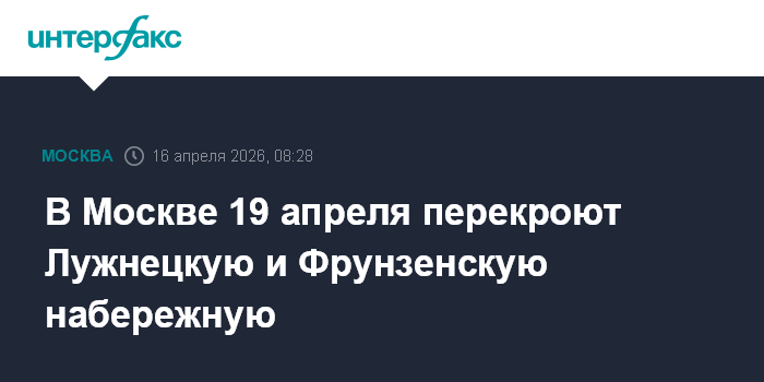 В Москве 19 апреля перекроют Лужнецкую и Фрунзенскую набережную