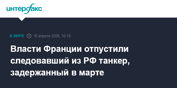 Москва. 16 апреля. INTERFAX.RU - Французские власти отпустили танкер Deyna под флагом Мозамбика, следовавший из Мурманска и задержанный ВМС Франции при содействии Британии 20 марта, сообщают западные СМИ.