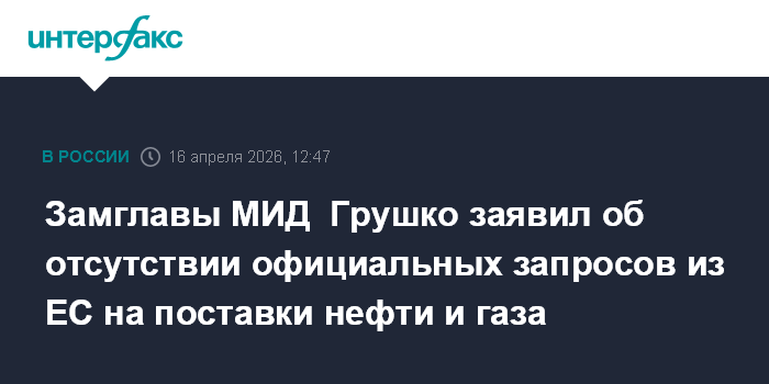 Замглавы МИД Грушко заявил об отсутствии официальных запросов из ЕС на поставки нефти и газа