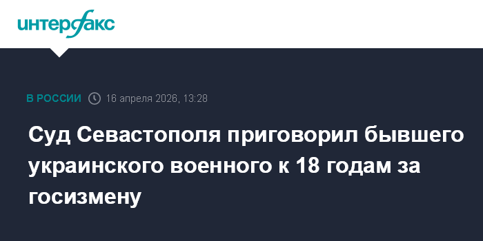 Суд Севастополя приговорил бывшего украинского военного к 18 годам за госизмену