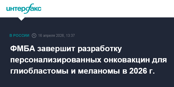 Москва. 16 апреля. INTERFAX.RU - Федеральное медико-биологическое агентством (ФМБА) в текущем году завершит разработку персонализированных онковакцин для терапии глиобластомы и меланомы, сообщила глава агентства Вероника Скворцова.