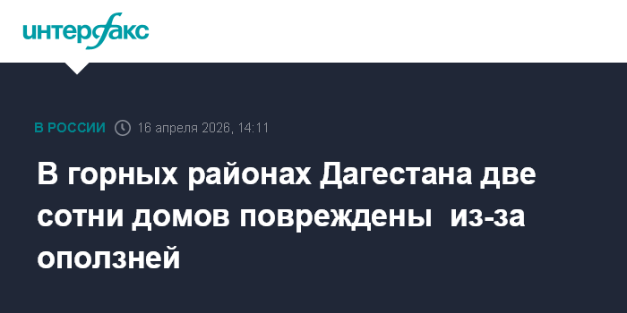 Москва. 16 апреля. INTERFAX.RU - В Дагестане продолжают оценивать ущерб, нанесенный оползнями в горных районах: больше всего повреждений домов выявлено в шести муниципальных образованиях, сообщила пресс-служба администрации главы республики Сергея Меликова.