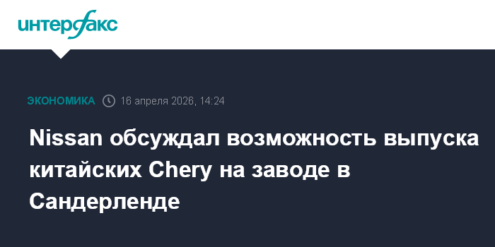 Москва. 16 апреля. INTERFAX.RU - Японская Nissan Motor и китайская Chery Automobile провели переговоры о возможности выпуска автомобилей Chery на заводе Nissan в Сандерленде, пишет The Financial Times со ссылкой на осведомленные источники.