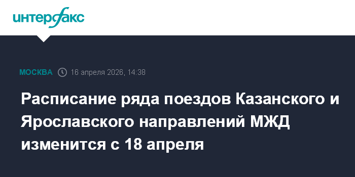 Расписание ряда поездов Казанского и Ярославского направлений МЖД изменится с 18 апреля