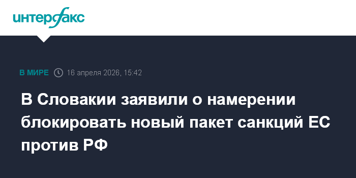 Москва. 16 апреля. INTERFAX.RU - Словакия готова заблокировать очередной пакет санкций в отношении России, заявил в четверг министр иностранных дел страны Юрай Бланар.