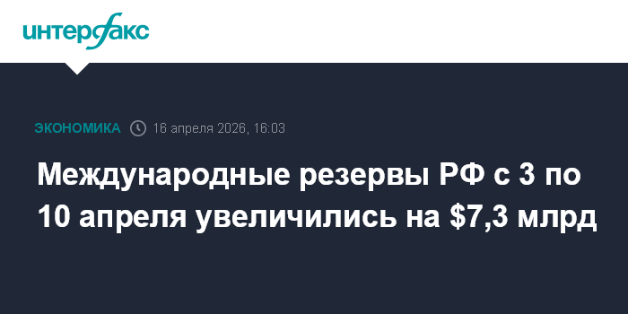Международные резервы РФ с 3 по 10 апреля увеличились на $7,3 млрд