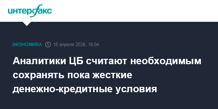 Москва. 16 апреля. INTERFAX.RU - Жесткость денежно-кредитных условий (ДКУ) из-за проинфляционных рисков пока стоит поддерживать, это позволит быстрее перейти к нейтральной денежно-кредитной политике (ДКП) в будущем, говорится в бюллетене "О чем говорят тренды", подготовленном департаментом исследований и прогнозирования Банка России.