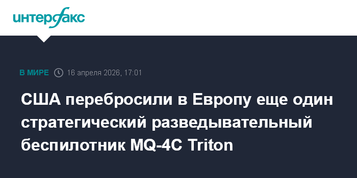 Москва. 16 апреля. INTERFAX.RU - США перебросили на итальянскую авиабазу Сигонелла на Сицилии еще один стратегический разведывательный беспилотник MQ-4C Triton, предназначенный для выполнения полетов в регионе Ближнего Востока, сообщил портал Itamilradar.