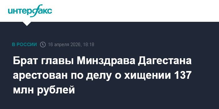 Брат главы Минздрава Дагестана арестован по делу о хищении 137 млн рублей