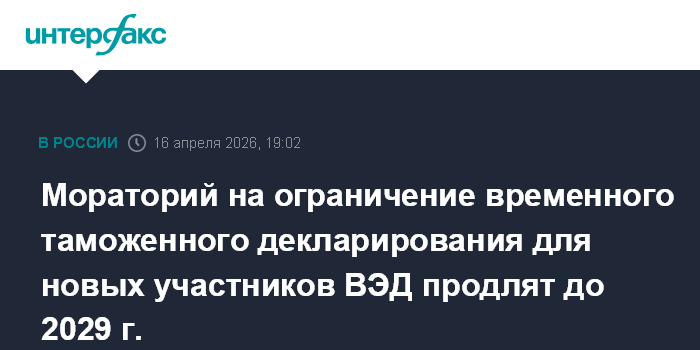 Мораторий на ограничение временного таможенного декларирования для новых участников ВЭД продлят до 2029 г.