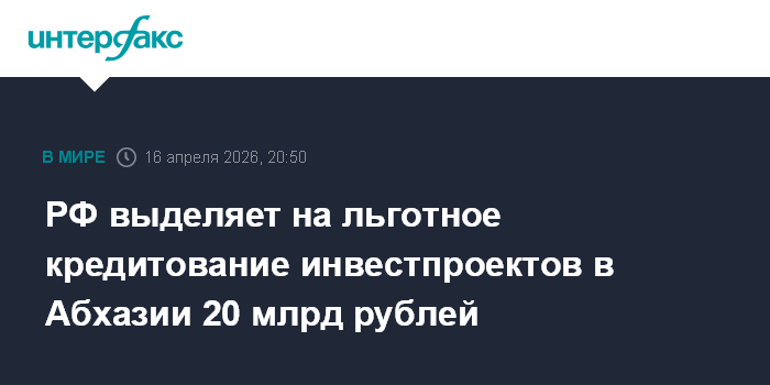 РФ выделяет на льготное кредитование инвестпроектов в Абхазии 20 млрд рублей