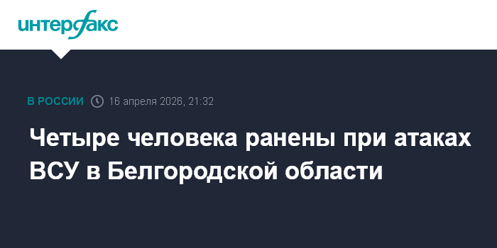 Москва. 16 апреля. INTERFAX.RU - Четыре мирных жителя пострадали при атаках украинских дронов в Белгородской области, сообщил губернатор Вячеслав Гладков в четверг.