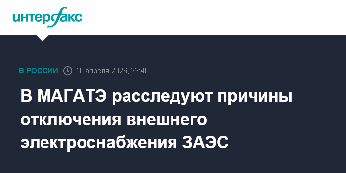 Москва. 16 апреля. INTERFAX.RU - Команда сотрудников МАГАТЭ изучает причины отключения внешнего электроснабжения Запорожской АЭС, которое произошло ранее в четверг, сообщили в организации.