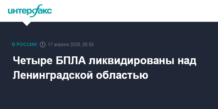 Четыре БПЛА ликвидированы над Ленинградской областью