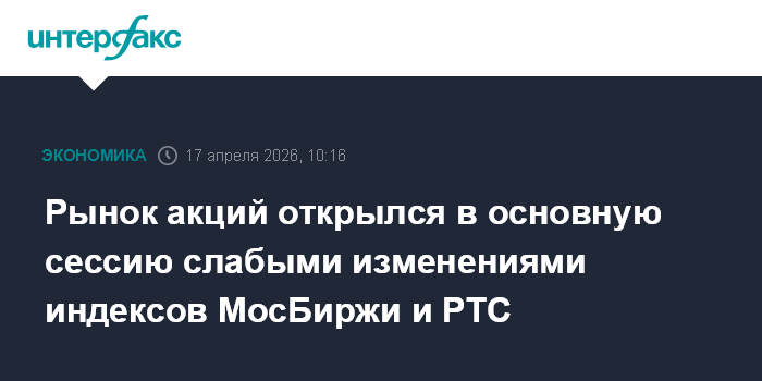 Москва. 17 апреля. INTERFAX.RU - Российский рынок акций на старте торгов основной сессии на МосБирже в пятницу демонстрирует смешанную динамику цен blue chips на фоне разнополярных сигналов с внешних фондовых площадок и снижения нефти (июньский фьючерс на Brent просел ниже $99 за баррель после роста накануне вечером к $100) благодаря новостям о локальном перемирии на Ближнем Востоке и ожиданиям возможного достижения соглашения об урегулировании конфликта между США и Ираном. Индексы МосБиржи и РТС за минуту торгов не претерпели заметных изменений.
