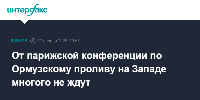 Москва. 17 апреля. INTERFAX.RU - Организуемая Францией и Великобританией в пятницу международная видеоконференция по Ормузскому проливу вряд ли приведет к весомым результатам, сообщает Financial Times (FT) со ссылкой на источники.
