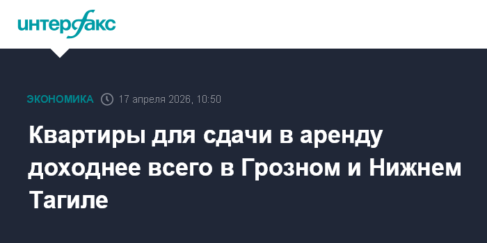 Москва. 17 апреля. INTERFAX.RU - Самая высокая доходность квартир на рынке аренды жилья зафиксирована в Грозном и Нижнем Тагиле, подсчитали в "Мире квартир".
