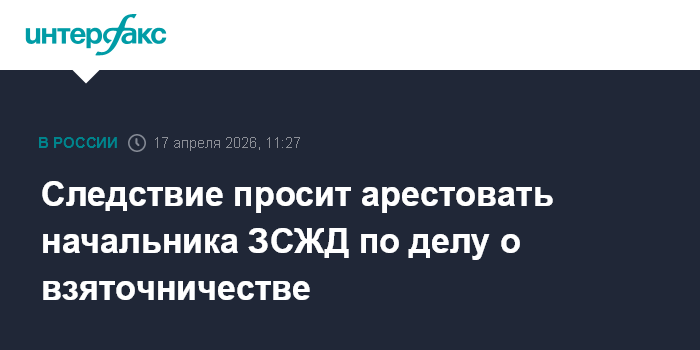 По версии следствия, с апреля 2025 по апрель 2026 года руководитель ЗСЖД незаконно получил от одного из учредителей юридических лиц, занимающихся строительством железнодорожных путей и грузовыми перевозками, взятку деньгами и имуществом на общую сумму 50 млн рублей за общее покровительство и совершение незаконных действий в пользу взяткодателя и представляемых им лиц.