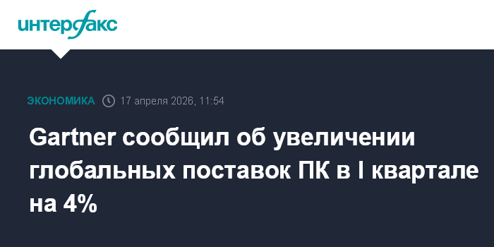 Москва. 17 апреля. INTERFAX.RU - Мировые поставки персональных компьютеров в первом квартале 2026 года увеличились на 4% в годовом измерении, до 62,8 млн штук, по предварительным расчетам исследовательской компании Gartner.