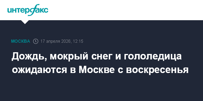 Москва. 17 апреля. INTERFAX.RU - Столичный главк МЧС предупредил горожан об ухудшении погодных условий в Москве в воскресенье и понедельник; ожидаются дождь и мокрый снег, возможна гололедица.