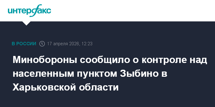 Москва. 17 апреля. INTERFAX.RU - Вооруженные силы России взяли под контроль село Зыбино Харьковской области, сообщает министерство обороны РФ.