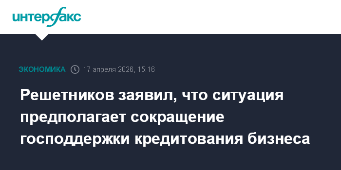 Решетников заявил, что ситуация предполагает сокращение господдержки кредитования бизнеса