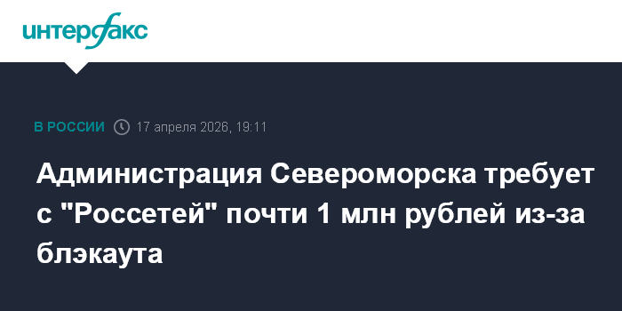 Администрация Североморска требует с "Россетей" почти 1 млн рублей из-за блэкаута