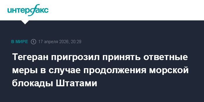 "Если другая сторона намерена нарушить соглашение, а, судя по всему, она этого хочет, и если морская блокада продолжится, Иран примет в ответ необходимые меры", - приводит его слова агентство "Тасним" в пятницу.