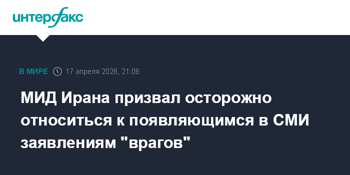 МИД Ирана призвал осторожно относиться к появляющимся в СМИ заявлениям "врагов"